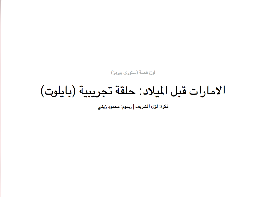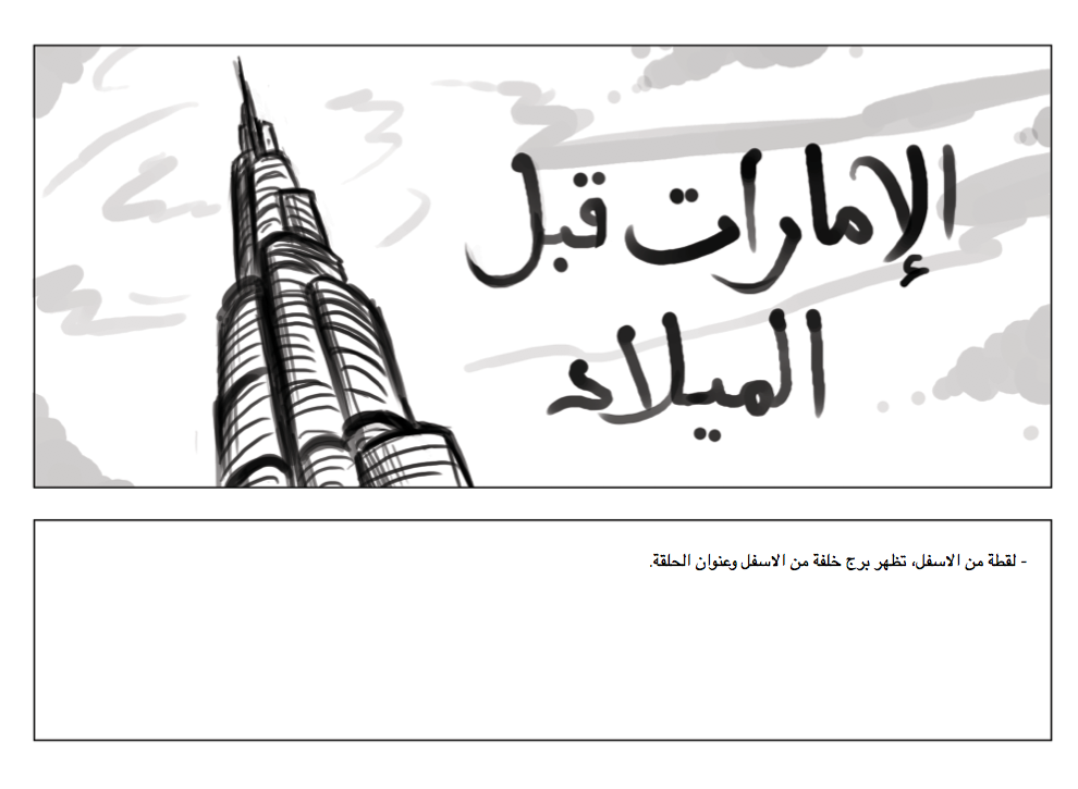 A storyboard booklet pdf, for a UAE historical documentary.