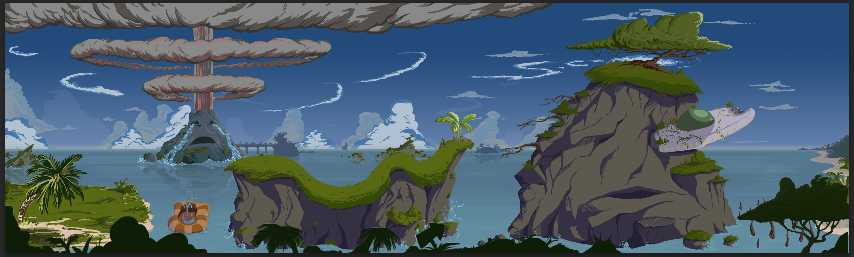 I picked a tropical island, and with the help of the following process I was able to turn it into a sad gloomy level.