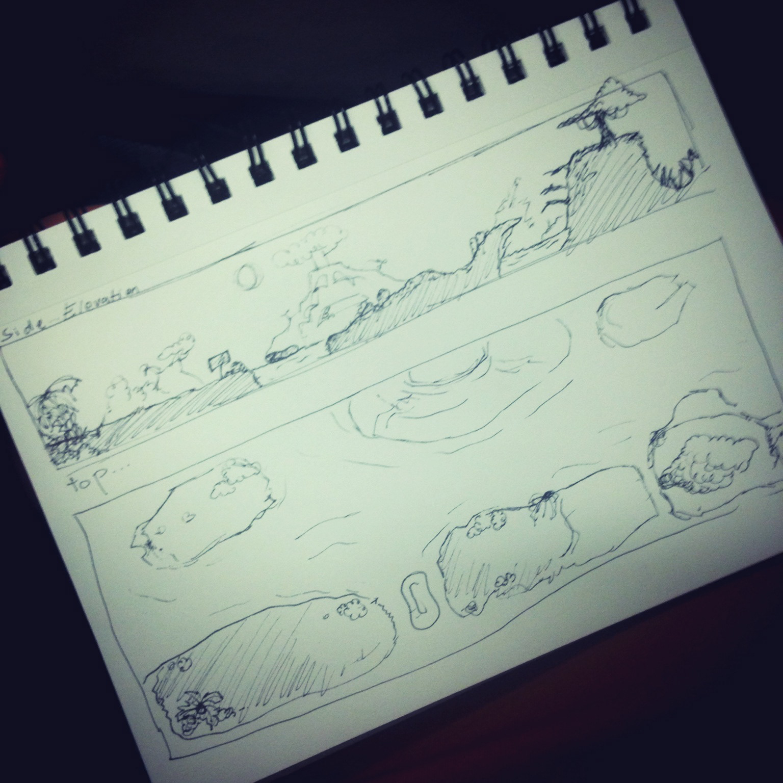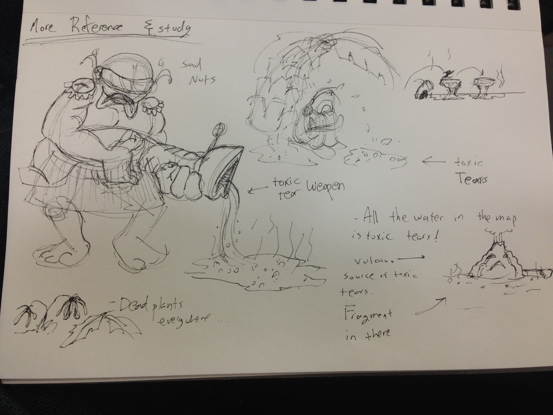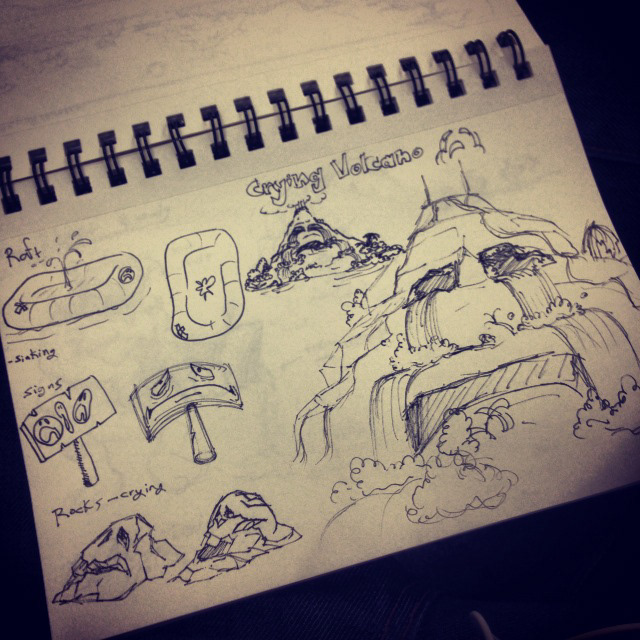 Figuring out the props and the way the crying volcano will look like.