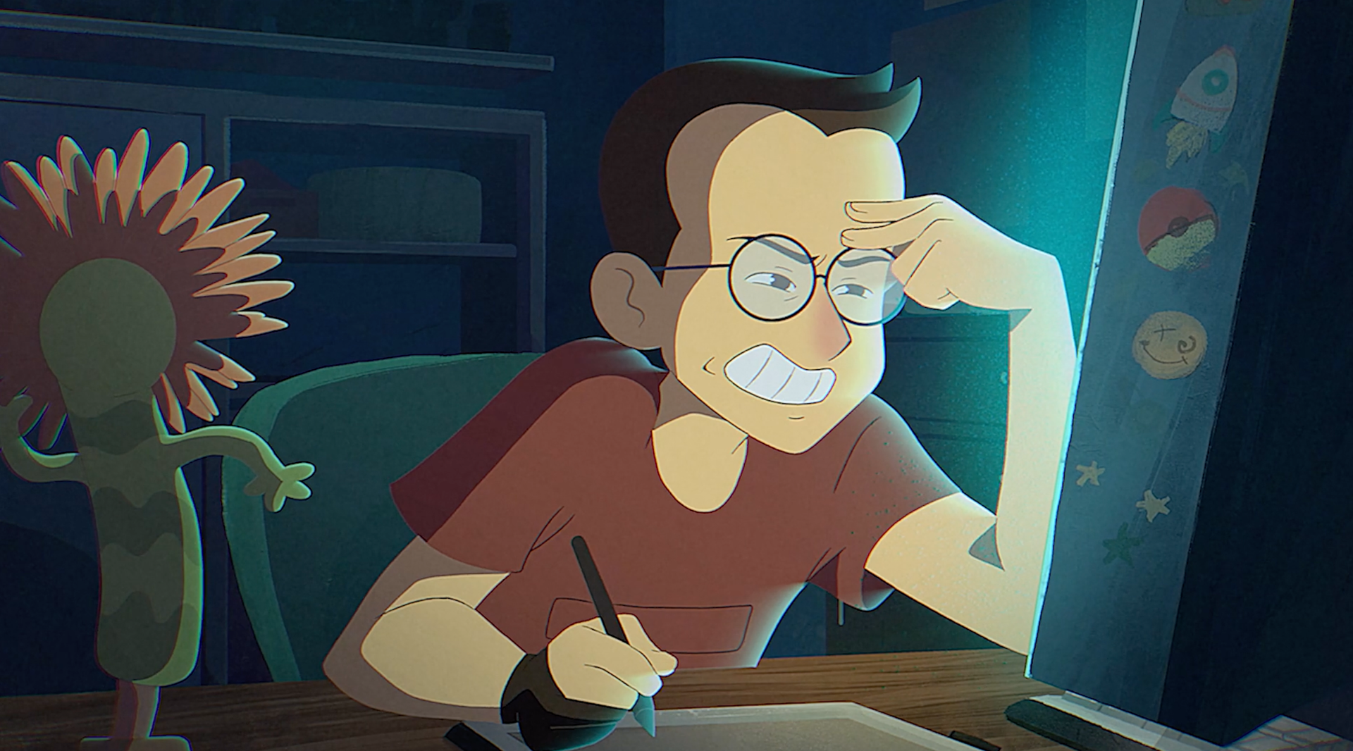 Characters from a lost past ... So yes.. I imagined the first thing I should do was dig in my past for passionate moments. This very much reminded me of my granfather Mahmoud who I am named after (God Rest His Soul).. He passed away a year after this Animation was made in 2024. My grandfather was a huge inspiration to me. He has a huge library filled with books and was a professor of Arabic and Lingustic at the University of Umm Alqura in Makkah. I always watched him read, write, and correct papers as a little kid. So I decided to base the writer on his character. The boy was myself as a young kid trying to draw and get inspired in my toy-filled room, and the little shy girl is my younger sister trying to overcome her stage fears.
